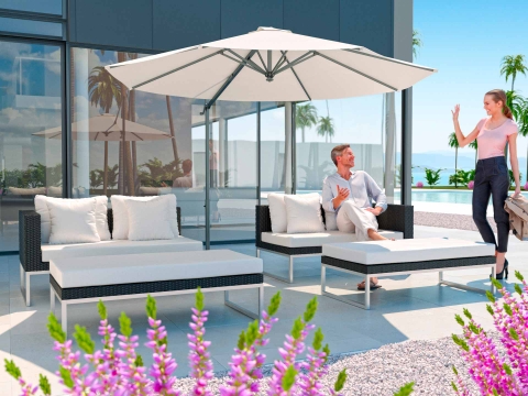 Chất liệu: mây nhựa, sợi tròn - khung sắt sơn tĩnh điện ( có thể làm bằng khung inox hoặc khung nhôm )