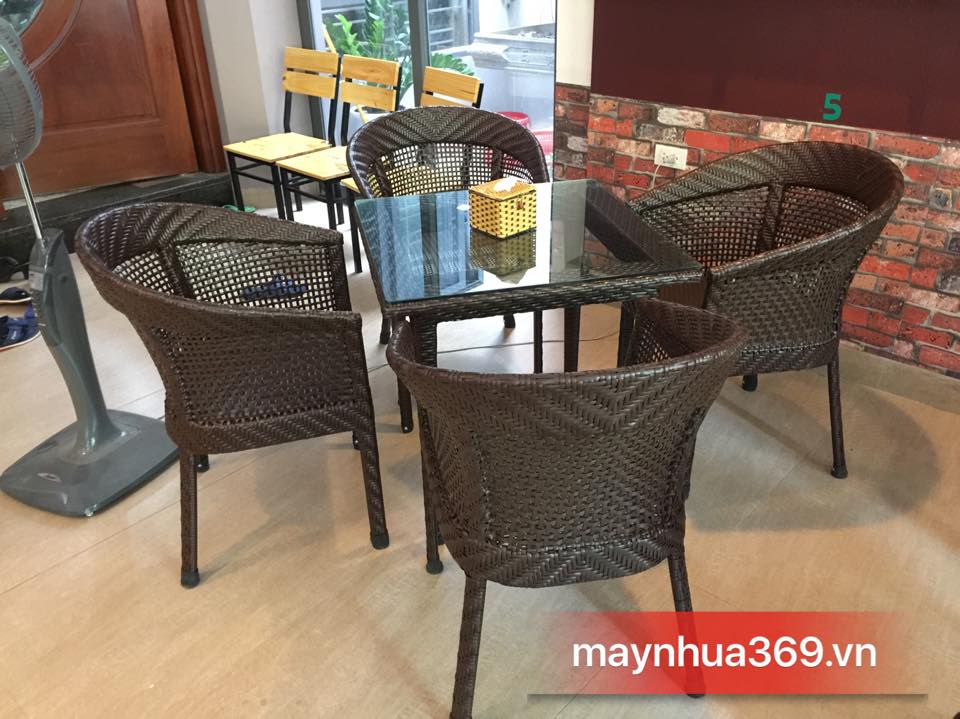 Bàn ghế cafe LT 102B bao gồm 04 ghế + 01 bàn vuông 70x70cm ( có kính)